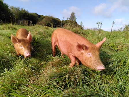 RWT announces other exciting progress with the introduction of two Tamworth pigs on-site at Pentwyn Farm, bringing local farmer, George, onboard as the Trust’s latest grazier. The pigs will play an important role in the extensive grazing system at Pentwyn. They will act as ecological proxies for their ancestor, the wild boar. The grazing, rootling and browsing of large herbivores is essential to create disturbance and keep ecosystems in their most biodiverse state. However, it is also crucial that overgrazing is avoided, and a balance is maintained in order to allow natural processes to develop and nature to thrive.